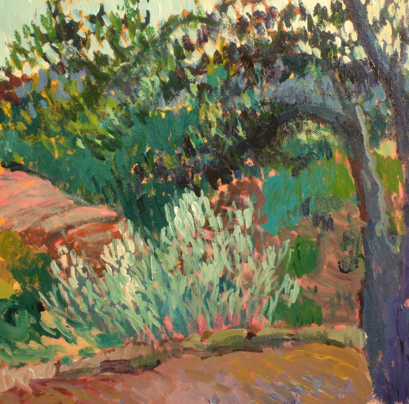 Collioure: trees behind the museum Laurie Fox PESSEMIER Acrylic on canvas 10.5 x 16 inches